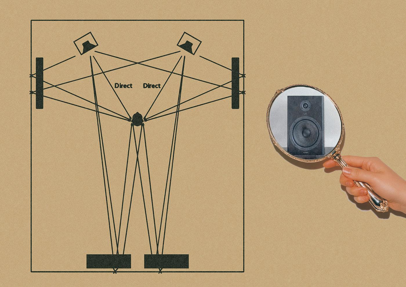 Первичные отражения — главный враг прозрачного микса. Найти точки первичных отражений можно так: попросите кого-то взять в руки зеркало и встать у противоположной от вас стены, а затем и у оставшихся двух стен комнаты. Сядьте в позицию прослушивания и посмотрите в зеркало. Попросите друга походить вдоль стен с зеркалом. Там, где в зеркало будут видны ваши мониторы, и располагаются точки первичных отражений.