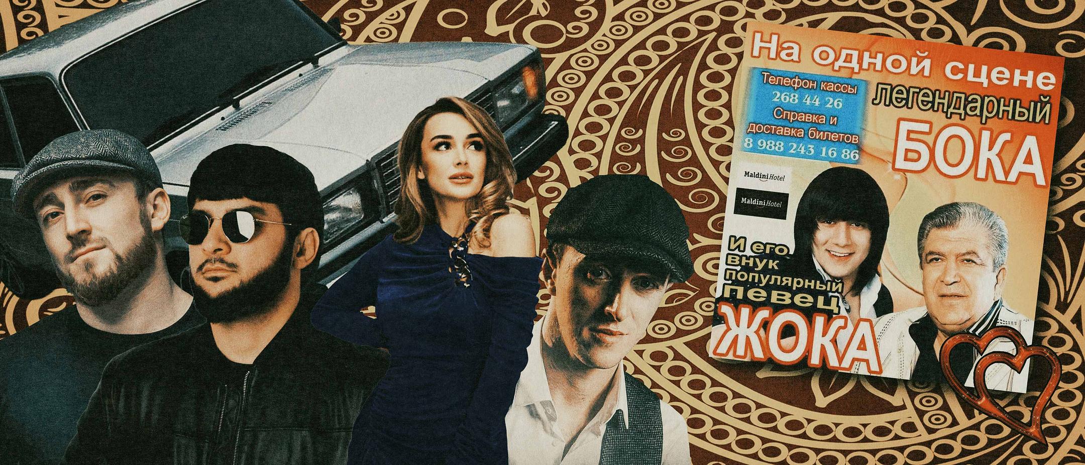 Исторически шансон с кавказским колоритом ещё в СССР создал певец Бока. Он пел в ресторанах, а потом на зонах. Как у уважающего себя кавказского состоятельного человека последней трети ХХ века, у Боки было несколько ресторанов, авторитетные друзья и всё схвачено. Он стал легендой «русской песни с акцентом»: «Доля воровская», «Я пьян», «Плановая девочка» — шлягеры жанра. Его лирический герой всегда сам во всём виноват. Тема раскаяния в песнях тянется красной нитью. А если это песня о любви, то для героя его избранница — свет в окошке. Первая звёздочка на небе. Луна, что освещает путь.
