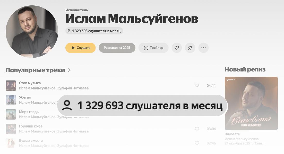Еженедельно песни «Песен» попадают в жанровые плейлисты почти на всех стриминговых платформах, за месяц рост слушателей на Яндекс Музыке с нуля до почти 11 тысяч.