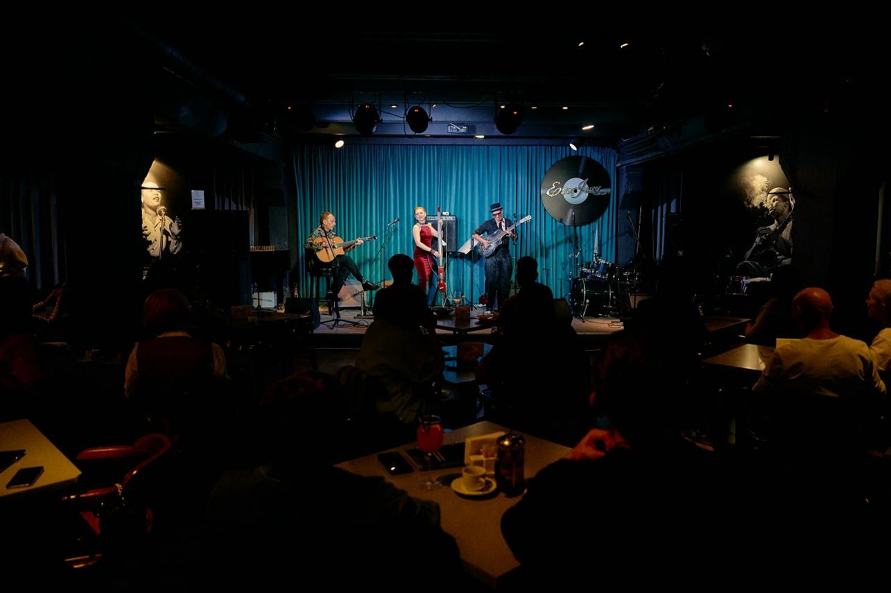 Пивной бар и камерная концертная площадка, оформленная в духе пин-апа 1950-х.