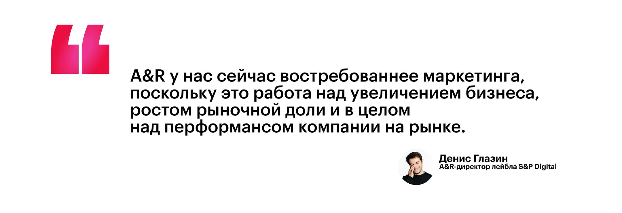 Кузьмичёв: Опытных A&R-менеджеров в целом немного, а лейблов становится всё больше, конкуренция с каждым годом растёт и растёт, как и потребность в специалистах. Например, когда мы открываем какую-нибудь вакансию, нет такого, что сразу откликается большое количество людей с опытом. Дефицит, на мой взгляд, связан с тем, что сегодня мало образовательных программ по этой специальности.