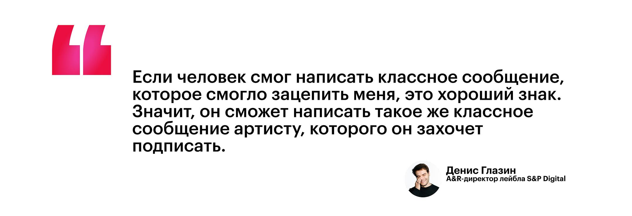 Глазин: Сейчас это ключевое. Если трек начинает вируситься и в нём слышится потенциал, то в личке у этого артиста уже десять скаутов от разных лейблов. Счёт идёт на часы. Темпы соперничества между лейблами высоки. Если ты сразу не вышел, когда трек начал обретать очертания тренда в TikTok, то это сделал кто-то другой.