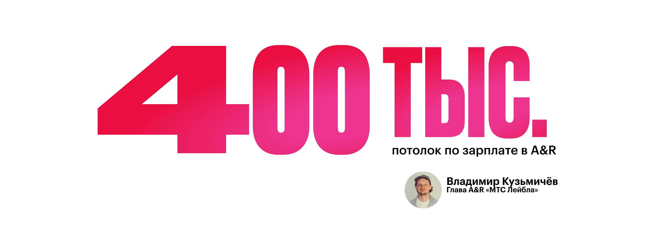 Мне кажется, 400 тысяч — потолок современной индустрии. Может быть, где-то и есть больше. В A&R не то чтобы есть супербольшой карьерный рост: младший A&R, старший A&R, потом руководитель A&R. Дальнейший рост уже связан, скорее всего, не с этой специальностью.
