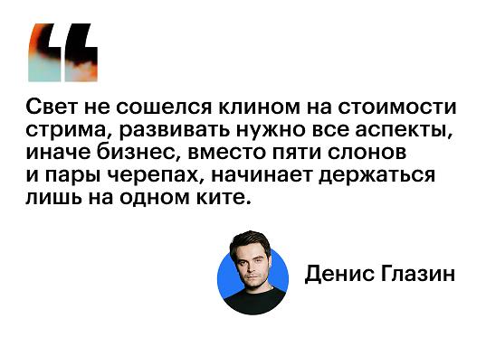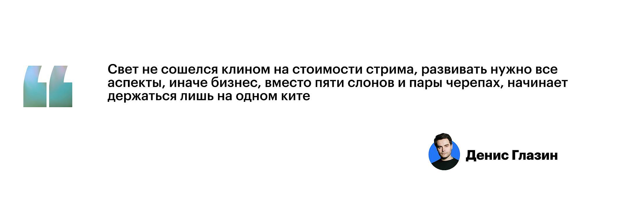 «Стоимость стрима — это секрет Полишинеля в индустрии. Всем запрещено её называть, но на переговорах ты можешь говорить, что у тебя дороже стрим. И в то же время все обязаны высылать подробные отчёты, по которым стоимость стрима легко высчитывается.