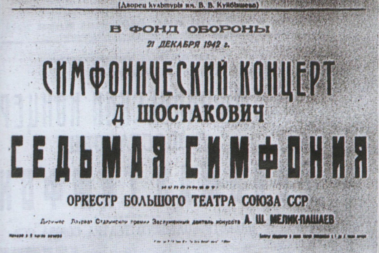 В Великую Отечественную войну переименованная в Куйбышев Самара стала «запасной столицей». Сюда эвакуировали не только заводы, дипломатов и правительственные учреждения, но и труппу Большого театра. Это очевидным образом сказалось на местной музыкальной жизни. С 1941 по 1943 год московские артисты поставили в городе 14 опер и балетов. Главной вехой стала премьера Седьмой (Ленинградской) симфонии Дмитрия Шостаковича 5 марта 1942 года, которая была дописана уже в Куйбышеве. В итоге оркестр Большого театра под руководством Самуила Самосуда исполнял симфонию для всей страны, поскольку по такому случаю власти организовали радиотрансляцию.
